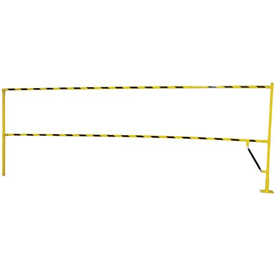 The Lift Gate can be lifted out of the way with a single finger. Simply lift and the self folding action folds the gate in a vertical position. With the assistance of the air assist cylinder the gate can be lifted with the slightest of effort. The Lift Gate ismanufactured of steel tubing with a yellow baked-in powder-coat finish for added toughness. The unique design can be either wall or floor mounted. The Lift Gate is fantastic for mounting on loading dock doors to help reduce the possibility of people falling.