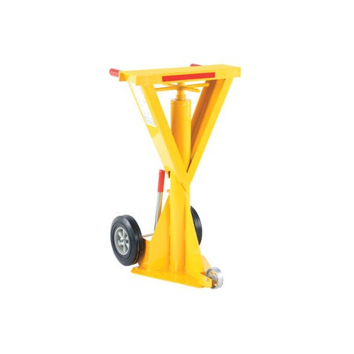 Jacks are used to prevent up-ending of semi-trailers when they are not connected to a tractor during loading and unloading operations. Also used to level trailers parked on sloped ground and to prevent landing gear from sinking into a soft surface. High strength steel construction. Flush-type zerk fitting for lubricating ACME screw. Meets OSHA regulations when used with wheel chocks. Powder coat safety yellow finish. Includes reflective collar for visibility at night.