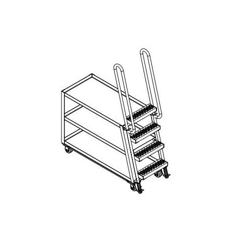 These oversized units are perfect for large jobs. Ideal for oversized cartons, boxes, parts, and supplies. A spring loaded ladder for sure, safe climbing, and loading. Steps have nonskid footing with self-cleaning surface. Each unit features three shelves. Standard 4" x 2" mold-on-rubber casters, 2 rigid and 2 swivel with brake. Built of durable steel or aluminum construction. Steel units are powder coated a blue finish.