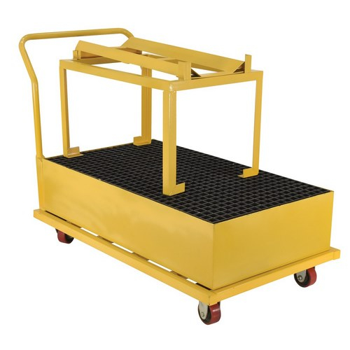 Transfer 55-gallon steel drums from area to area and then safely dispense the drums with this nonflammable Retention Basin Cart. This unit is constructed of steel to resist extreme heat environments.