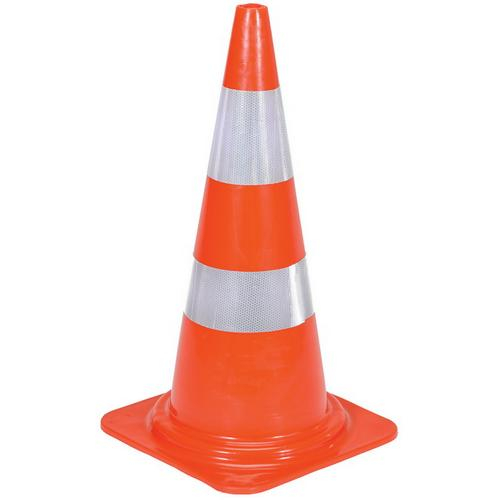 This durable all weather cone is constructed from one-hundred percent PVC for long life. The construction prohibits fading and cracking. Will retain its shape for years of reliable service. Features a one piece mold. High-visibility orange in color.