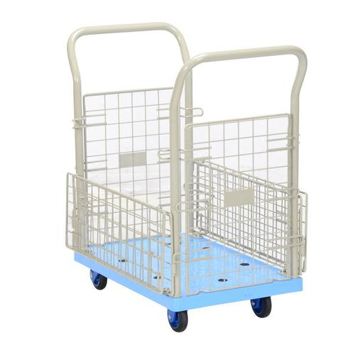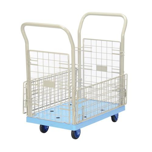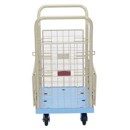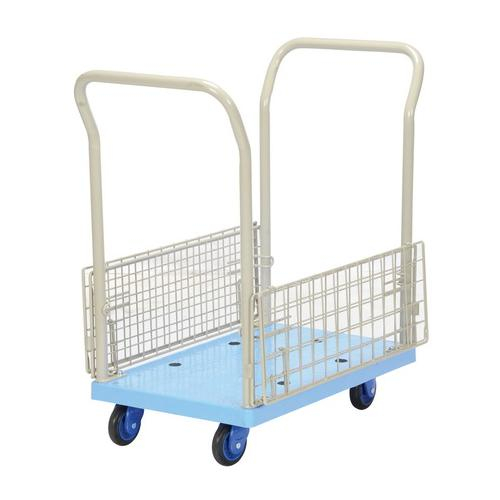 The Plastic platform cart is a great addition to the shipping and distributing facilities. The plastic platform creates a durable, yet lightweight construction that can be transferred simply from workstation to workstation. The unit rolls on casters for smooth transference over a variety of terrains, while the side nets enable the utmost security. The attached handle creates a more ergonomic posture of personnel during use.