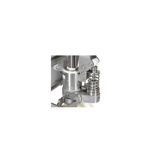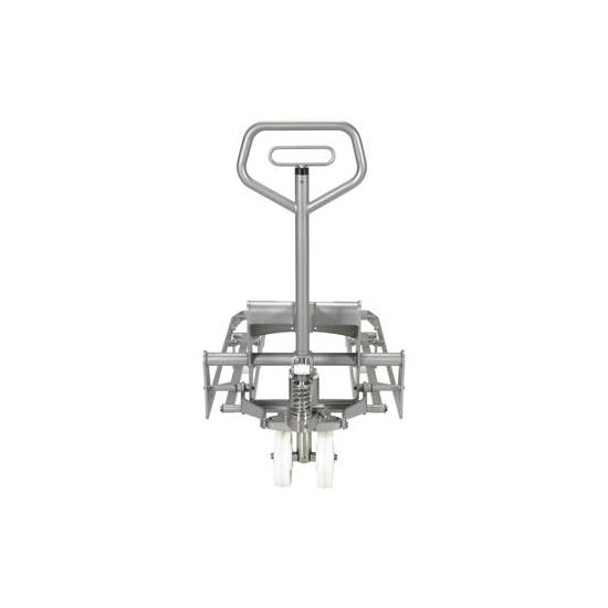 The Stainless Steel Hydraulic Hand Pump Pallet Jack is a superb addition to the food handling and other hygienic environments. The stainless steel construction is not only strong, but also simple clean with its open fork design for thoroughly detailing the unit before/after transferring products. The height of the ergonomically friendly handle diminishes slouching and can be rotated for simple maneuvering of products down narrow corridors and pathways. All bearings are sealed for waterproof protection during both use and cleaning. For best use, in the lowered position place the forks inside the fork pockets of the desired product, pump the handle up/down until the unit is raised off of the surface, and once elevated to the desired height simply maneuver the unit to the preferred location.