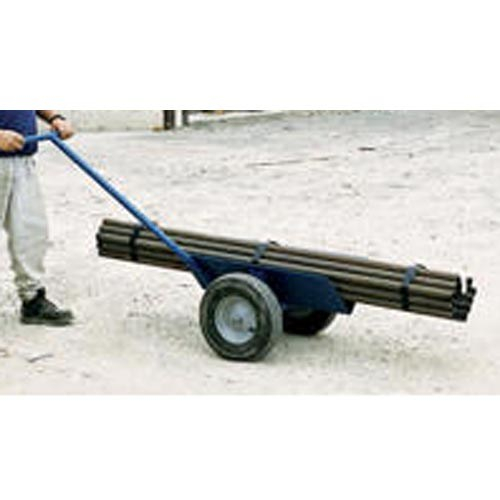 Pipe and tubing measuring up to 20 feet long may now be easily moved by one person. The V-Groove design keeps loads at the horizontal center of gravity for maximum stability and safety. Large 16" diameter tires. Includes a 37" long handle for added maneuverability. Steel construction. Unit is powder coated blue.