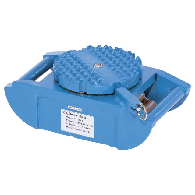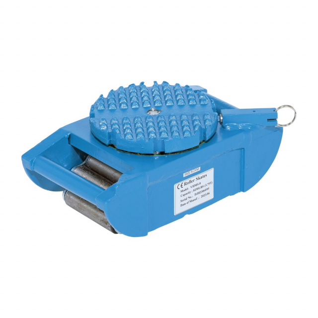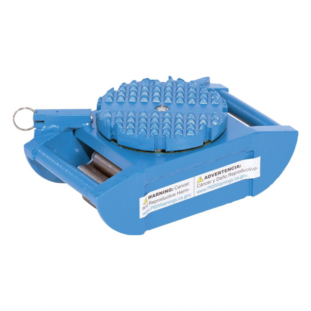Made of high-strength annealed ductile iron, this steel machine roller has swivel tops that rotate three hundred sixty degrees (360 degrees) on chrome steel ball bearings to allow for easier turning. The rollers form a "tank track" to revolve around a center load bearing plate in the frame to provide maximum maneuverability. The weight of the load is transferred directly from the load bearing plate to the rollers, eliminating axle friction and requiring less power to start and move. This unit is virtually maintenance free.