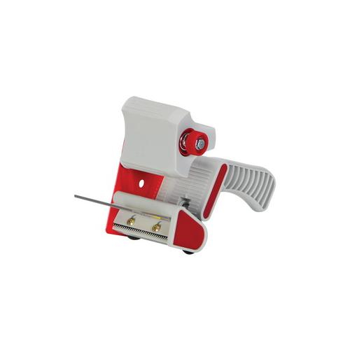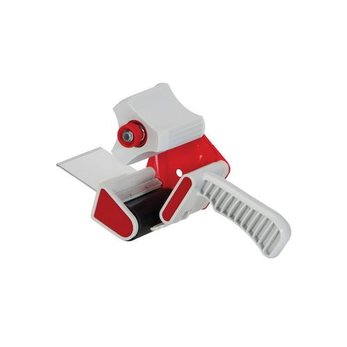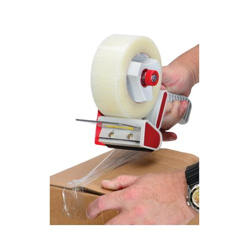 The hand held Tape Dispenser is great for the distribution and packaging facilities. The plastic construction is designed for comfortable lightweight use during long periods of constant use. Simply fit tape unit into dispenser and pull over the roller opening. Once onto the roller, the user can dispense the tape smoothly to the required length. Fits 3" wide tape rolls.