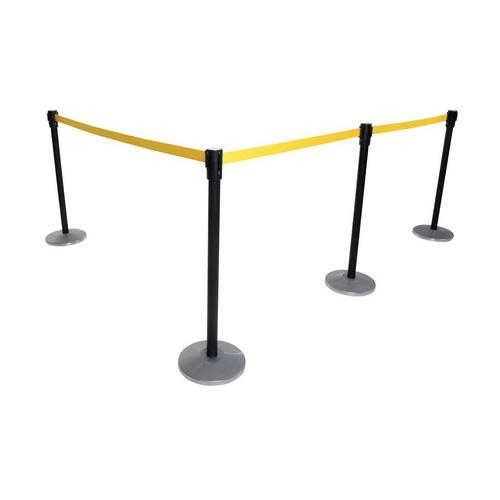 Keep lines flowing smoothly with economical Indoor Personnel Guidance Barrier. Ideal for indoor applications. WEB are not interchangeable with series TSB. This post with yellow fabric web, has a self-reeling top. Web end will attach to wall-mounted receiver or another floor-mounted barrier.