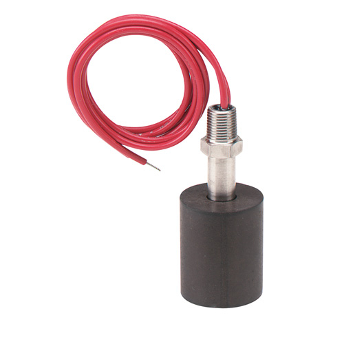 Series F7 compact level switches combine low cost and reliability with fast, simple installation. Hermetically sealed reed switches are actuated by magnets permanently bonded inside the float and can be easily adapted to open or close a circuit on rising or falling levels. Vertical mount models are shipped with normally open switch contacts which close as the float rises toward the mounting threads. Reverse switch action by removing the float, rotating it end-for-end and replacing it on the stem. Switch ratings are suitable for many solid state control systems and monitors or alarms. Simple relay interfaces can be used for higher current applications.