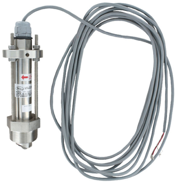 Series PFT Paddlewheel Flow Sensor, 4-20 mA Output, 316SS body, 1-1/2" NPT Connection, FKM Seals, Tungsten-Carbide Shaft, PTFE Bearing