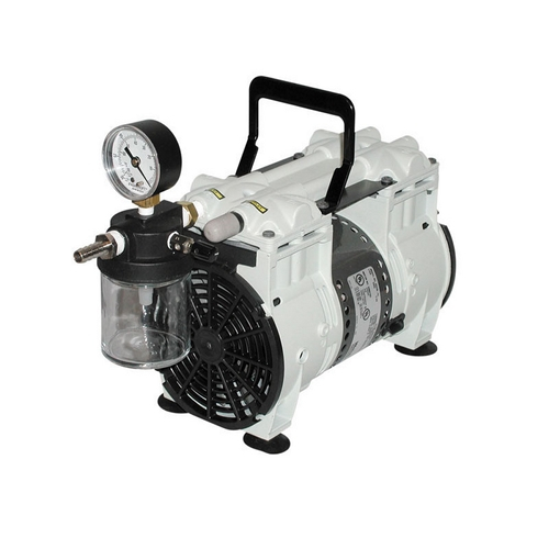 Reliable WOB-L Piston pump is perfect for many common laboratory vacuum applications. Features: Vacuum to 5 Torr (29.8"Hg). Includes Vacuum Regulator and Gauge - simple to adjust and monitor vacuum level. Inlet Water Trap - float ball rises to seal off pump from accidental ingestion of water. Muffler quiets pump and filters discharge air. For use with dry or aqueous vapor applications only.
