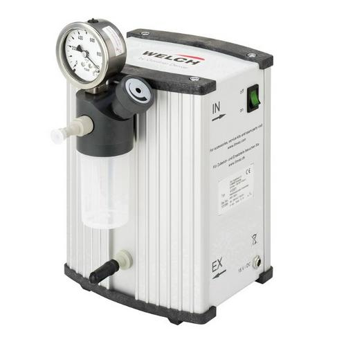 The diaphragm pump MPC 090 E is a one-stage pump with mounted separator with manometer and metering valve led. It is compact and functional. Maintenance and service are quick and easy to carry out. The pump operates extremely quietly.