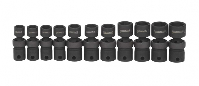 Williams, JHW37916, 1/2 Drive Universal Impact Socket Set, 6 Point, Metric, 11 Piece Set, Black Industrial Finish