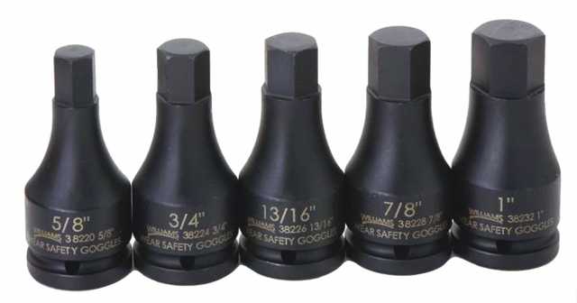 Williams, JHW38932, 3/4 Drive One Piece Impact Hex Bit Driver Set, SAE, 5 Piece, Black Industrial Finish