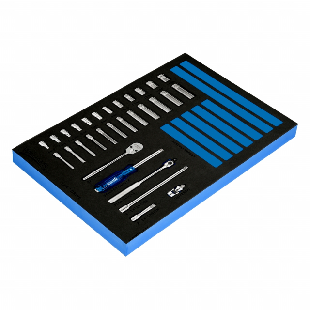 Williams, JHWFMSM-30HF, 30 piece 1/4 Drive 6 Point Metric Shallow & Deep Sockets & Drive Tool Set in 1/3 Foam Drawer Insert