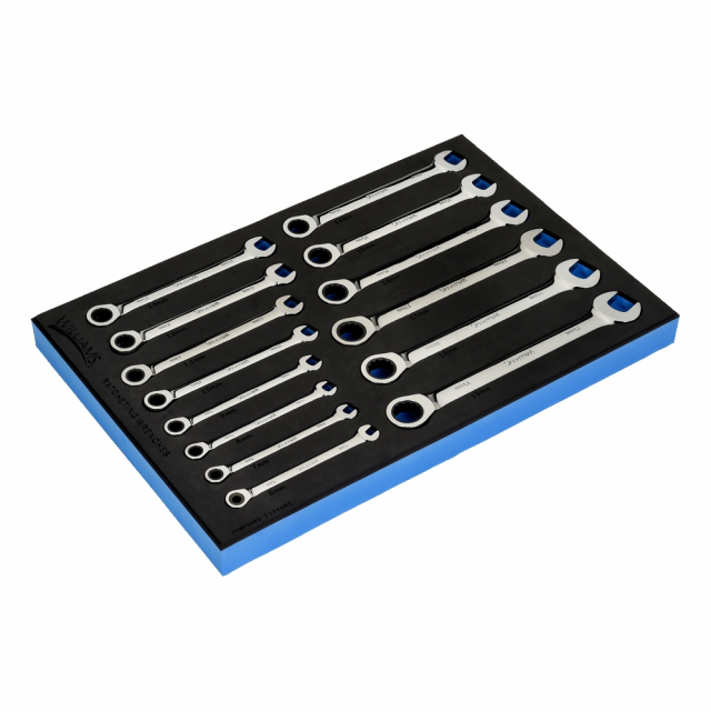 Williams, JHWFMWS-1124NRC, 14 piece Metric Ratcheting Combination Wrench Set in 1/3 Foam Drawer Insert (8-19 mm)