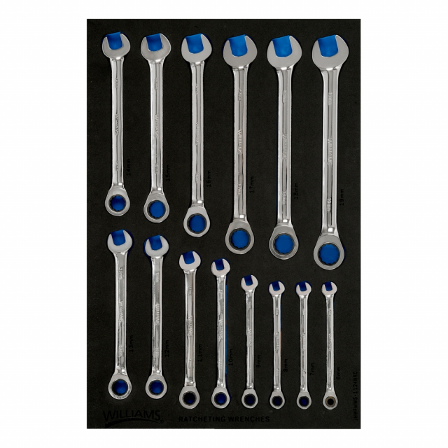 Williams, JHWFMWS-1124NRC, 14 piece Metric Ratcheting Combination Wrench Set in 1/3 Foam Drawer Insert (8-19 mm)