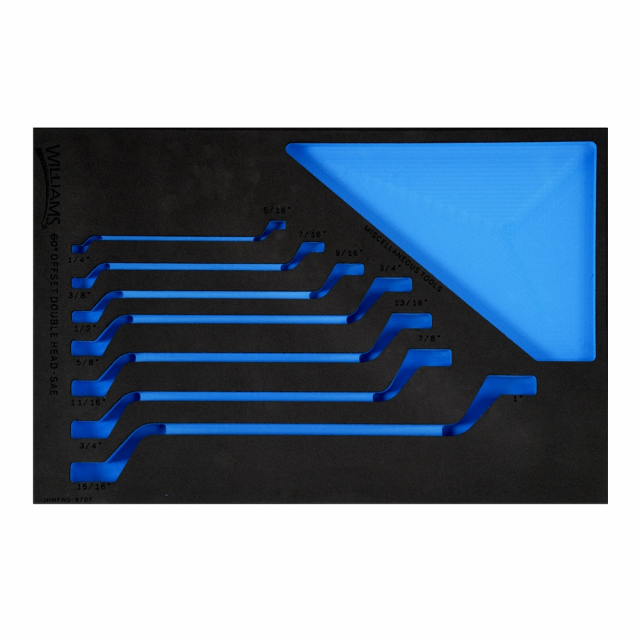 Williams, JHWFWS-870713FM, 1/3 Foam Drawer Insert Only for 7 piece SAE Double Head 60° Offset Box End Wrench Set