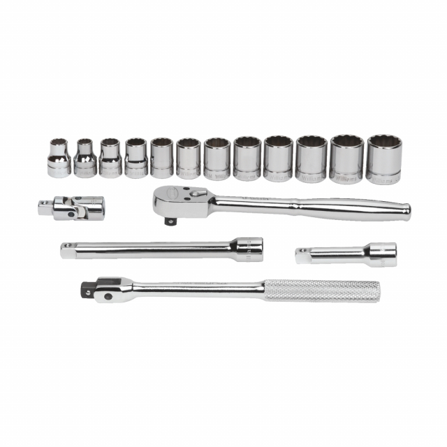 Williams, JHWMSB-17FTB, 3/8 Drive Socket and Drive Tool Set, 12 Point, Metric, 17 Pieces, in Keep Safe Foam, in Metal Tool Box