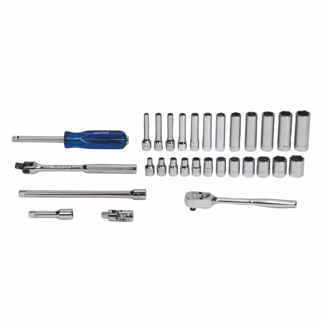 Williams, JHWMSM-30HF, 1/4 Drive Socket/Tool Set,6 Point, 30 Pieces, in Keep Safe Foam