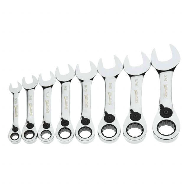 Williams, JHWWS1168RCS, Stubby Reversible Ratcheting Combination Wrench, 12 Point, Set, 8 Piece