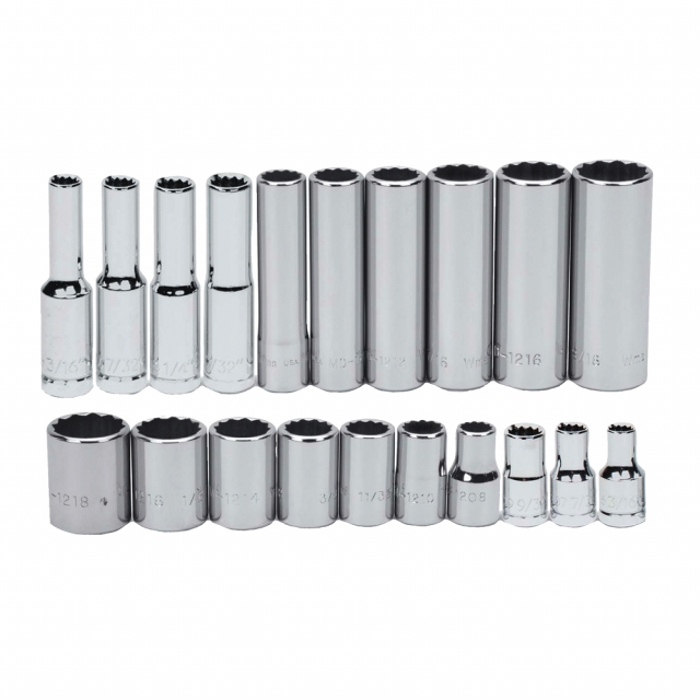 Williams, JHWWSM-20RC, 1/4 Drive Shallow & Deep Sockets on Clip Rails, 25 Pieces