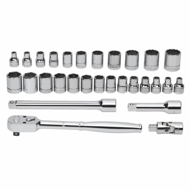 Williams, JHWWSMB-29F, 3/8 Drive Socket and Drive Tool Set, 6 &12 Point, SAE, 29 Pieces, in Keep Safe Foam