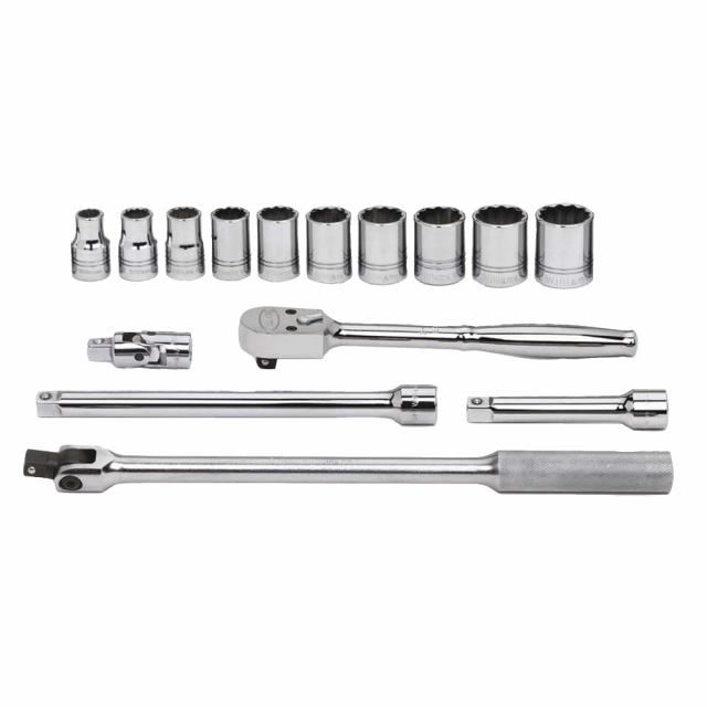 Williams, JHWWSS-15FTB, 1/2 Drive Socket and Drive Tool Set 12 Point, SAE, 15 Pieces, in Keep Safe Foam, In Metal Tool Box