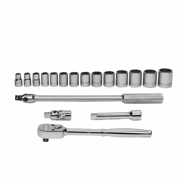 Williams, JHWWSS18HFTB, 1/2 Drive Socket and Drive Tool Set 6 Point, SAE, 18 Pieces, in Keep Safe Foam, In Metal Tool Box