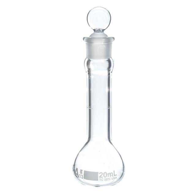 Wilmad-LabGlass, LG-8120-107, Class A Volumetric Flask, Heavy Duty/Wide Mouth, Glass Stopper, 20mL