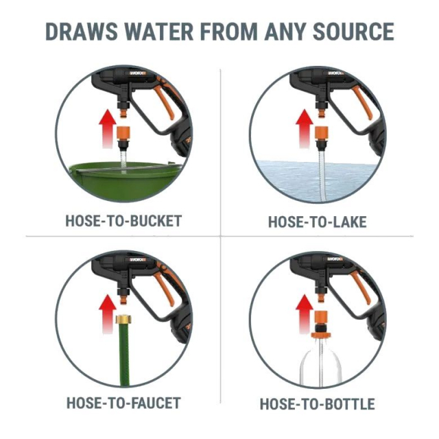 Worx, WG620, 20V Power Share 4.0Ah Hydroshot Portable Power Cleaner (320 PSI)