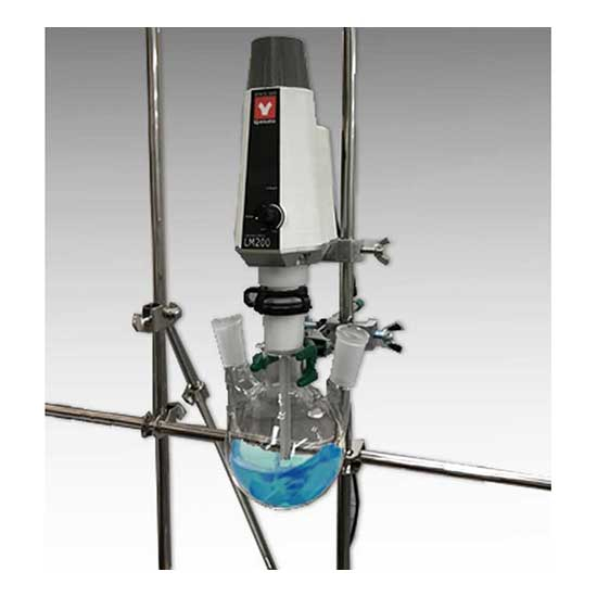 LM Series compact design laboratory flask mixer features integrated drive and stirring seal allowing direct installation of flask and stirring in a vacuum and sealed state. No time-consuming shaft alignment required. Its strong stirring power is perfect for samples of high volume and high viscosity.