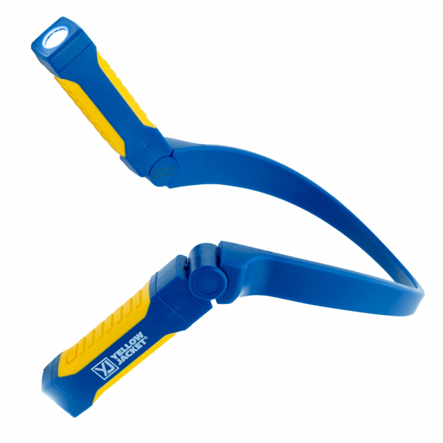 Proper lighting and the freedom to use both hands makes every job run smoother. The YELLOW JACKET Neck Flashlight 10990 provides hands-free illumination, allowing the flexibility and convenience to get the job done. The rugged and durable neck light is designed to rest comfortably around the neck, while offering intense and targeted illumination for up to 5 hours. Equipped with high, low and off dual-power switches, the light heads pivot 90° to ensure you have light where you need it.