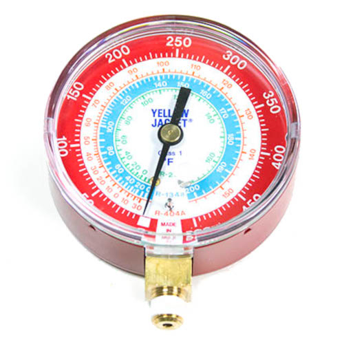 Yellow Jacket, 49105, 3-1/8" Red Pressure 0-500 psi Dry Manifold Gauge ( F ) for R22/134a/404A Refrigerants