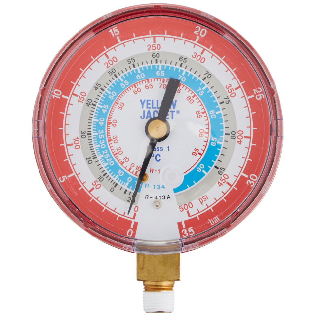 Yellow Jacket, 49165, 3-1/8" Red Pressure bar/psi Dry Manifold Gauge ( C ) for R12/134a/413A Refrigerants
