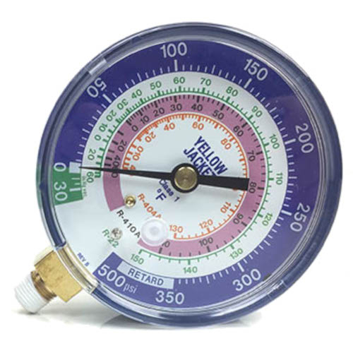 Yellow Jacket, 49238, 3-1/8" Blue Compound 30"-0-350 psi Certified Dry Manifold Gauge ( F ) for R22/404A/410A Refrigerants