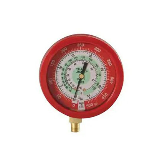 Yellow Jacket, 49519, 3-1/2" Liquid-Filled Red Pressure 0-800 psi (0 to 55 bar) Manifold Gauge (F and C) for R410A Refrigerants