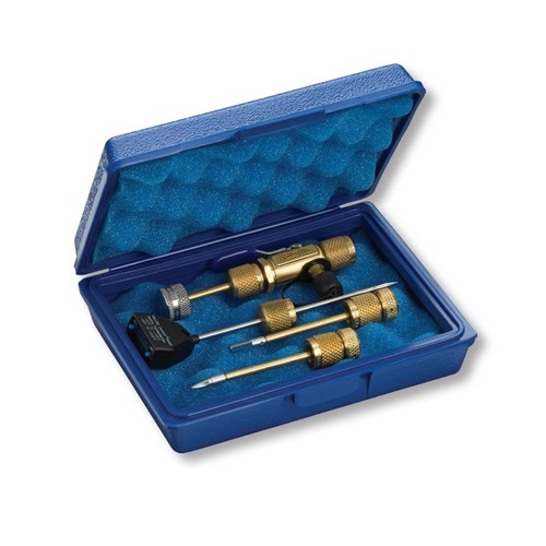 The RealTorque SuperHeat Kits include all the tools necessary for accurate system superheat calculations. The thermometer and core removal tool with side port allow for the pressure and temperature measurements to be taken at the same system location. Compare these measurements to the system refrigerant P/T chart to determine the system superheat. Once charging is complete, use the RealTorque Core Removal tool to properly tighten the system Schrader core to the manufacturers recommended torque value of 3-5 in-lb with its integrated torque mechanism. The kits also include all the tools necessary to replace Schrader cores without losing system pressure even if the core or mating core threads are damaged.