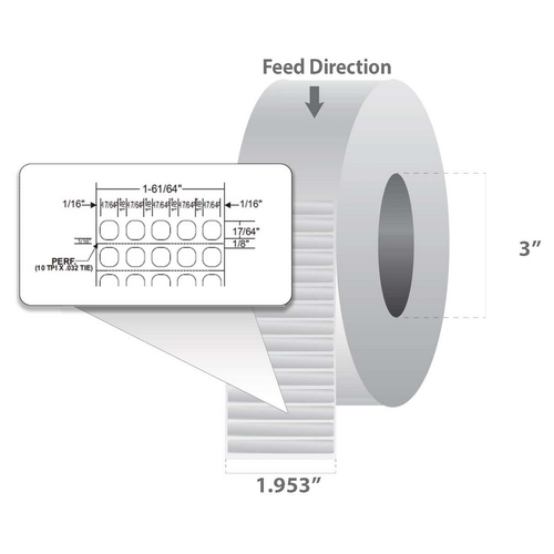 White Thermal Transfer Poly Label, Perm Adhesive0.27" x 0.27", 3" Id, 8" Od, 6 Across, Perf, 10,000 Lpr, 1 Rpc, Priced Per Roll