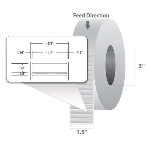10022955, Z-Ultimate 2000t White Gloss Polyester Label, 1.5" X 0.375", 3" Core, 8" OD, 10,000 Lpr, Priced Per Roll