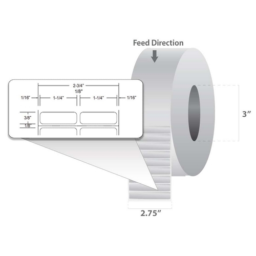 10022987, Z-Ultimate 2000t White Gloss Polyester Label, 1.25"X 0.375", 3" Core, 8"od 10000/Roll