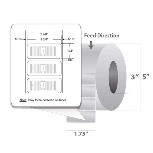 10026457, PolyPro 3000t RFID Label, 1.75" X 0.75", BT349 Inlay, Monza R6-P, 3" Core, 1000 Lpr, 2 Rpc