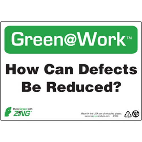 Zing Green Products, 1036, Green at Work 7"H x 10"W "How Can Defects Be Reduced?" Recycled Plastic Sign
