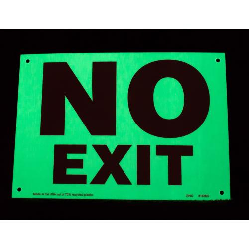 Zing Green Products, 1886G, 7" x 10" Glow in Dark Plastic Sign: "No Exit"