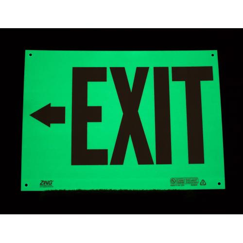 Zing Green Products, 2082G, 10" x 14" Glow in Dark Plastic Sign: "Exit" with Left Arrow Symbol