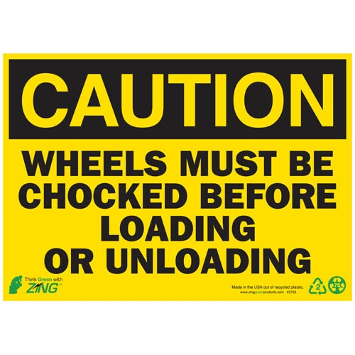 Zing Green Products, 2153S, Eco Safety Sign 10x14" "Caution Wheels Must Be Chocked"