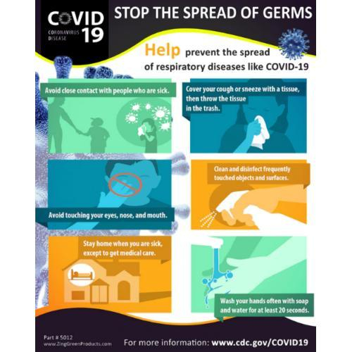 Zing Green Products, 5012, COVID19 Coronavirus Safety Poster, Stop Spread of Germs