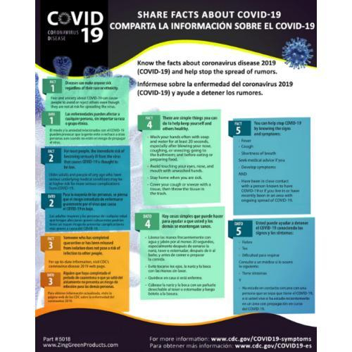 Zing Green Products, 5018, COVID19 Coronavirus Safety Poster, Share the Facts, English/Spanish
