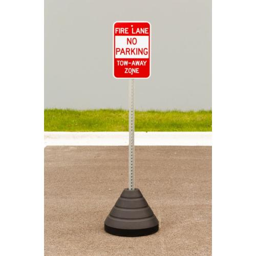 Zing Sign Kit Bundle, "Fire Lane, No Parking," features a recycled aluminum sign, a galvanized steel signpost, and a recycled rubber sign base. Zing Traffic and Parking Signs are made in the USA from recycled aluminum, and feature 3M Engineer Grade Prismatic reflective sheeting. Zing's Signpost Base holds parking, traffic, and policy signs firmly in place. The base is made in the USA from recycled tire rubber, and supports sustainability initiatives and LEED credits. The recycled rubber construction is weather-proof and virtually maintenance free. The base will not rust, crack, chip, crumble, or corrode, and the aerodynamic design is resistant to strong winds. No sand or water is required! Zing's Galvanized Steel Signposts are sturdy, durable, and rust-proof. The posts measure 5" H x 1-3/4" W. Two signs can be Mounted on opposite sides of the same post.