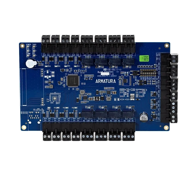 AHEB I/O expansion boards can communicate with AHSC1000 or AHDU series controllers through OSDP V2.2 over RS-485.