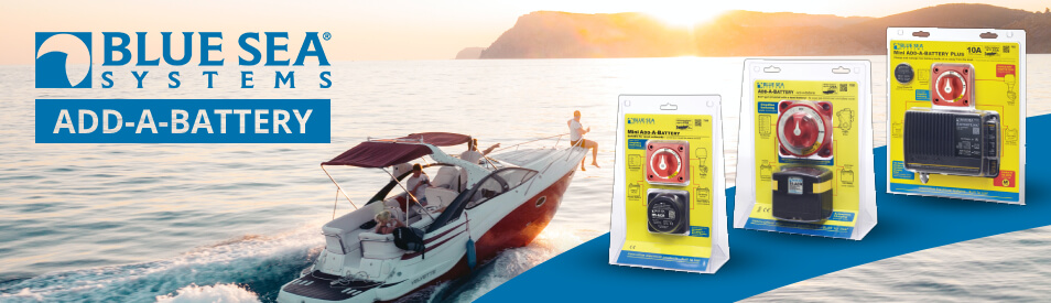 Blue Sea Add-A-Battery kits include a Dual Circuit Plus™ Battery Switch & an Automatic Charging Relay. They simplify switching and automate charging. All you need to do is turn the battery switch on when you board and off when you leave. Easy as ABC!